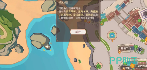 玩家可以直接通过地图搜索的方式,深海口所在的位置就在海滩的边上。玩家可以点击地图上的小鱼标志,一般在这些地方所能钓到的鱼也是不一样的。玩家可以跟着一起来看看,了解这些地方有哪些鱼。