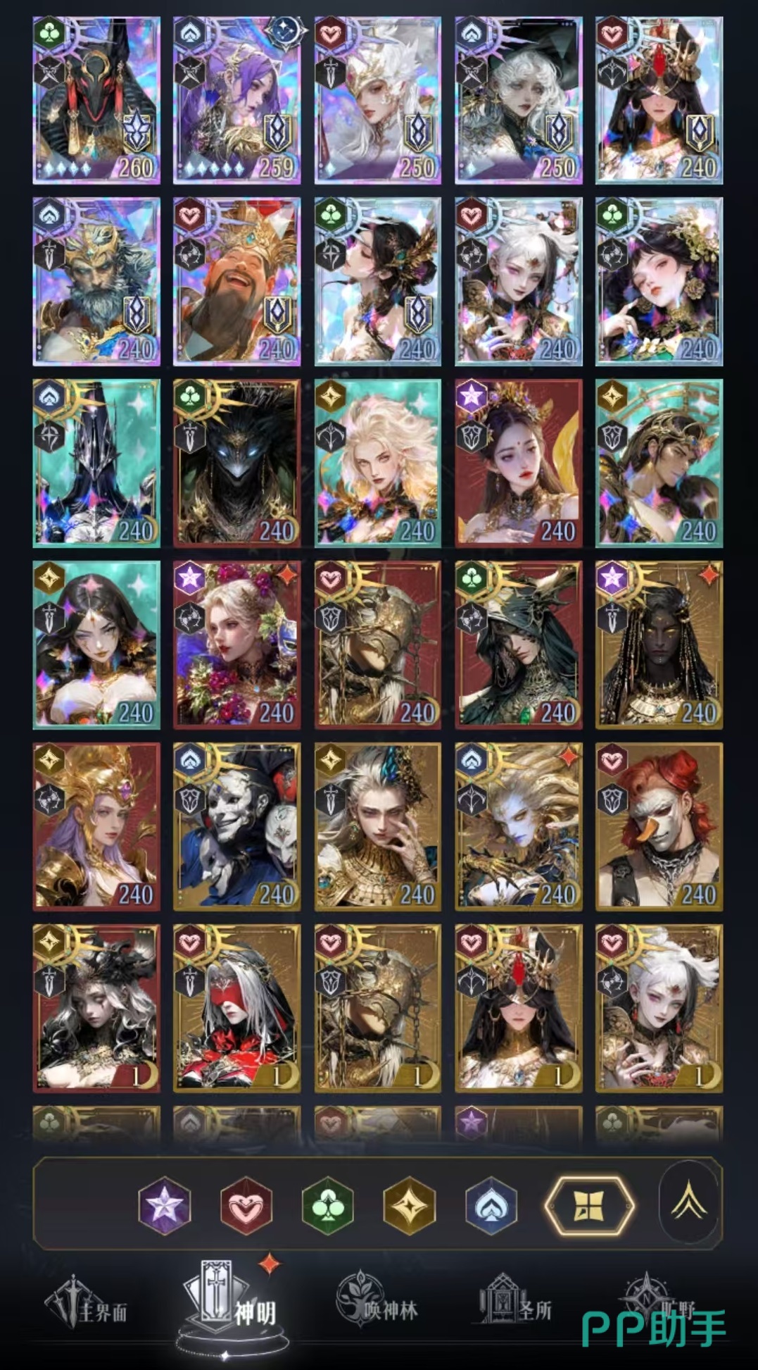 黑桃阵营中赫卡忒与波塞冬表现亮眼。赫卡忒是目前黑桃最强法师,具备越战推图能力,其他同阵营角色难以企及。她集输出、承伤与回复于一体,技能涵盖攻击提升、暴击增强、吸血效果以及单体眩晕控制。激活神器后,还可按比例掠夺敌方最大生命值与攻击力,综合实力稳居版本T0梯队。波塞冬同样是当前环境下的顶尖角色,出场率极高,具备开局聚怪能力,能有效提升团队AOE伤害效率。不过其完全体需依赖神器支持,建议适当投入资源进行培养。