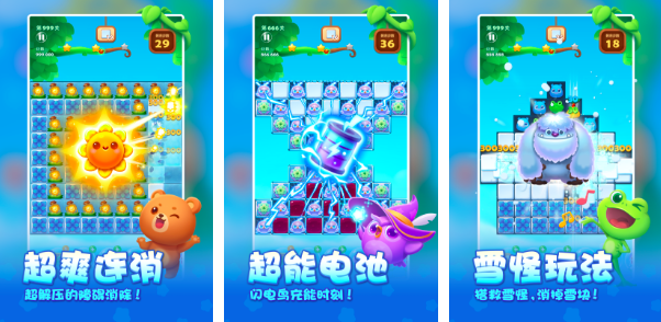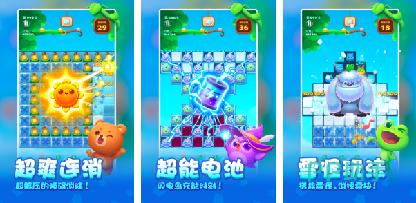开心消消乐,陪伴玩家十余年之久的消除游戏。时至今日依旧非常火爆,顺着藤条救出云端的村长吧。而在近几年的发展当中,该游戏的关卡已经超过5000多个。不仅打造了爆爽的营销模式,而且还加入了超能电池、雪怪玩法和果冻黏黏玩法,每一次挑战度更高,快乐更多。连消引发的炫酷特效,更是冲击着玩家们的视觉。
