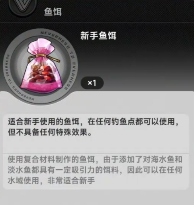 新手鱼饵是玩家解锁钓鱼功能后的首推基础配置。该饵采用通用型复合配方,不含特殊地域限定成分,可全水域生效——涵盖淡水湖泊、浅滩沼泽及开放海域等所有初始可进入水体。其核心价值在于低操作门槛与高容错率:无需掌握潮汐周期、鱼类活跃时段或地形分层知识,即可稳定触发普通鱼群咬钩反应。虽不提升稀有鱼种(如鹤顶红、黑魔鬼)的生成权重,但在技能成长初期承担着关键过渡职能,保障资源积累节奏不中断,建议全程常备。