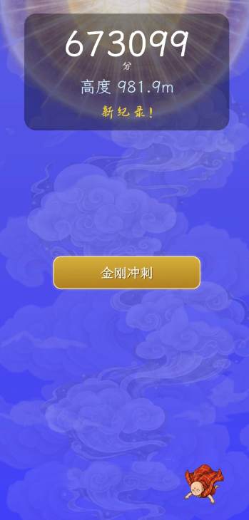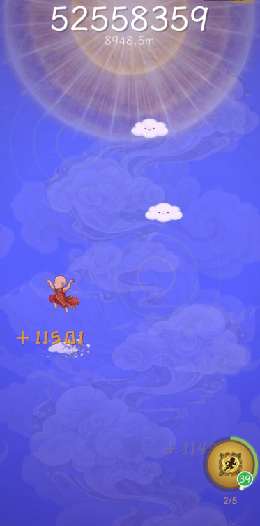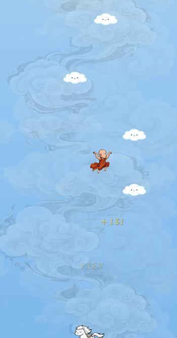 本作采用垂直上升式核心机制,剧情设定为唐三藏受天庭误判,需凭自身之力踏云直上,闯入南天门讨还公道。操作方式极为简洁:仅需单指轻点屏幕,即可控制角色在浮动云层间起跳。过程中需预判障碍物出现节奏,灵活规避雷电、浮石、断云等动态关卡元素;同时拾取散落道具,其中“白龙马”图标可触发即时分数加成,显著提升通关表现。