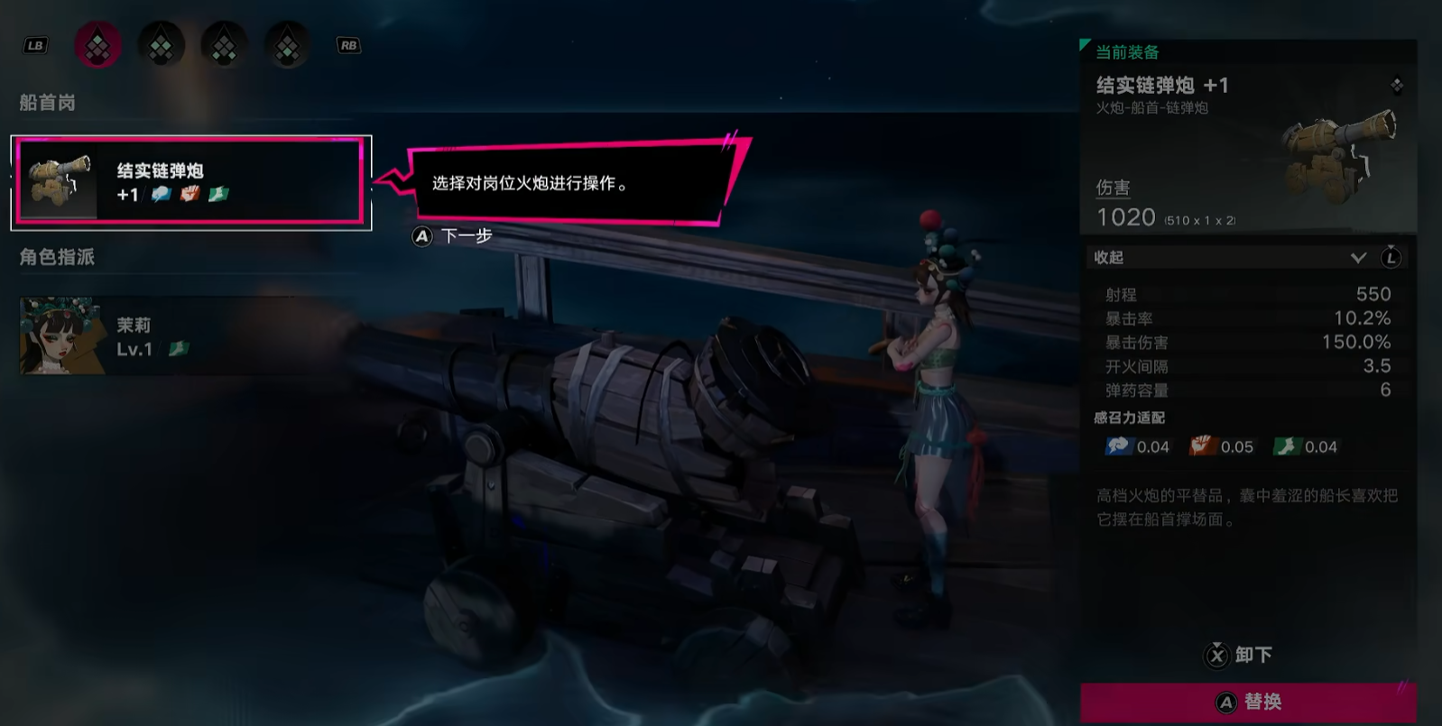 强化系统可全面提升该火炮的基础属性,包括伤害倍率、暴击强度及装填效率等维度,是中期战力跃升的重要路径。每门火炮支持绑定一名舰员协同操作,推荐搭配角色茉莉——其专属技能可提升火炮瞄准精度与命中稳定性,有效放大该武器的实战效能,形成高协同度的输出组合。
