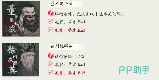 这8个关卡在主线当中都是比较难的水平,玩家第一个需要面对的是董卓追击战,要想成功通过这个关卡,就需要对付董卓和手下的西凉铁骑,而西凉铁骑的难度都相当高,需要针对性的兵种才能成功攻略,比较推荐大家尝试的是铁甲骑兵,可以配合诸葛亮一起上阵使用。玩家要想解锁该关卡,需要先完成主线的虎牢关之战。