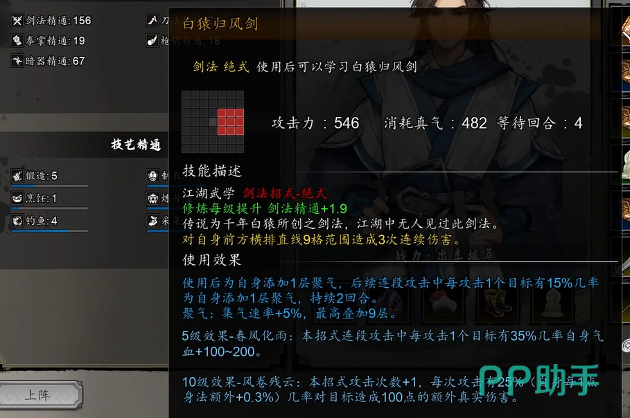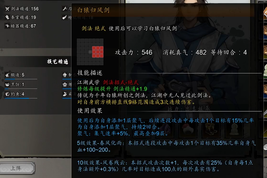 《白猿归风剑》属高机动性近战剑法,招式迅捷、连段流畅,特别适配游戏前中期副本与精英怪应对场景。掌握后可明显缩短单场战斗耗时,降低资源消耗压力。该秘籍无前置心法要求,习得即用,成长曲线平滑,是剑修流派早期成型的关键拼图之一。