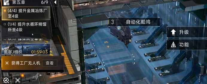 无人机工厂并非独立建筑,而是船坞系统的进阶模块。玩家需达成15级后方可激活该功能。船坞等级提升依赖于宇宙战斗中采集的金属资源,当船坞升至指定等级,界面将自动开放“无人机工厂”建造入口。点击确认后,即可在船坞结构内完成部署,后续可随时进入管理界面查看运行状态与生产进度。