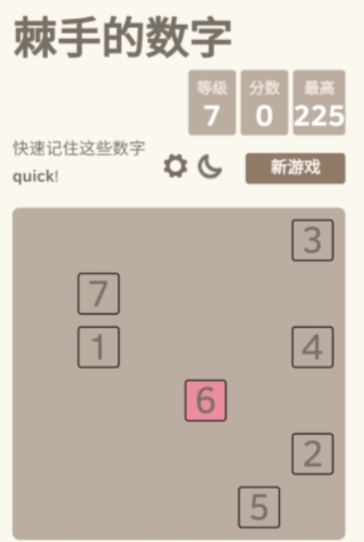 《棘手的数字》作为一款猜数字的益智类小游戏,可以称得上是一款不容错过的佳作。这款游戏有其独特的魅力,来吸引无数热爱数字解谜的玩家。游戏的谜题丰富多样,但是都是与数字相关的。游戏操作起来很简单,但是猜数谜题更是难度爆表。玩家在游戏中要记住屏幕里的所有数字,在倒计时结束后,点开上方题板出现数字的对应位置。这款游戏是对玩家一心多用与记忆力的双重考验。