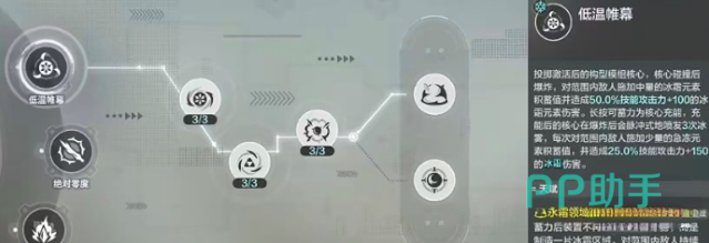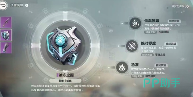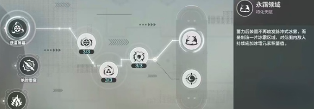 “冰冻之握”作为控制与输出兼备的核心模组,包含三大技能:主动技“低温帷幕”、充能技“绝对零度”,以及被动技“急冻”。