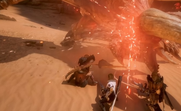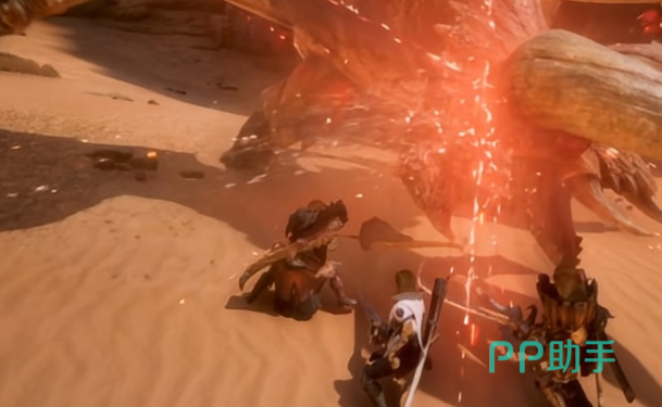 要激活共斗技机制,玩家必须先与其他三名成员组成四人小队。进入战斗后,每位角色会通过攻击怪物逐步积累专属能量条。当所有队员的能量条全部充满时,即可触发共斗技。此时,一名玩家可率先锁定怪物的特定部位,系统将自动高亮显示该目标区域,其余队员无需额外沟通便能同步锁定同一位置,实现精准集火打击,并在短时间内造成爆发性的群体伤害。