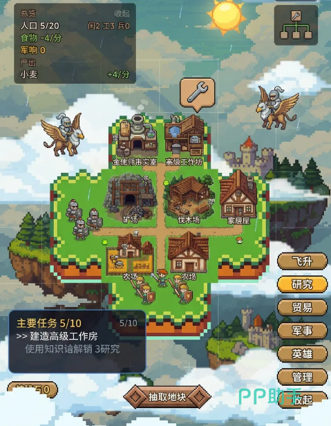 随着进度推进,玩家还可组建军队、升级武器装备、研发前沿科技,并建造更高级别的功能性建筑。通过主动出击清剿荒野怪物、拓展贸易路线等方式,不断积累财富并开启全新轮回周期,形成完整的发展闭环。