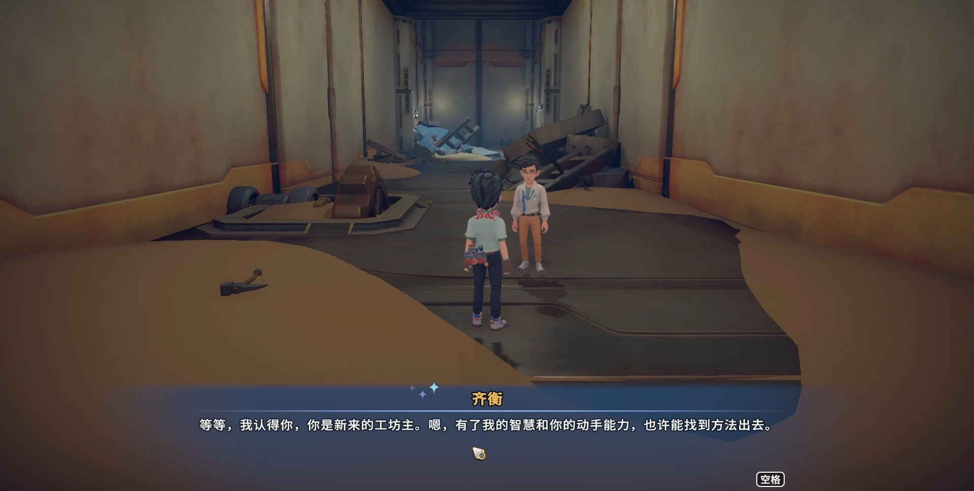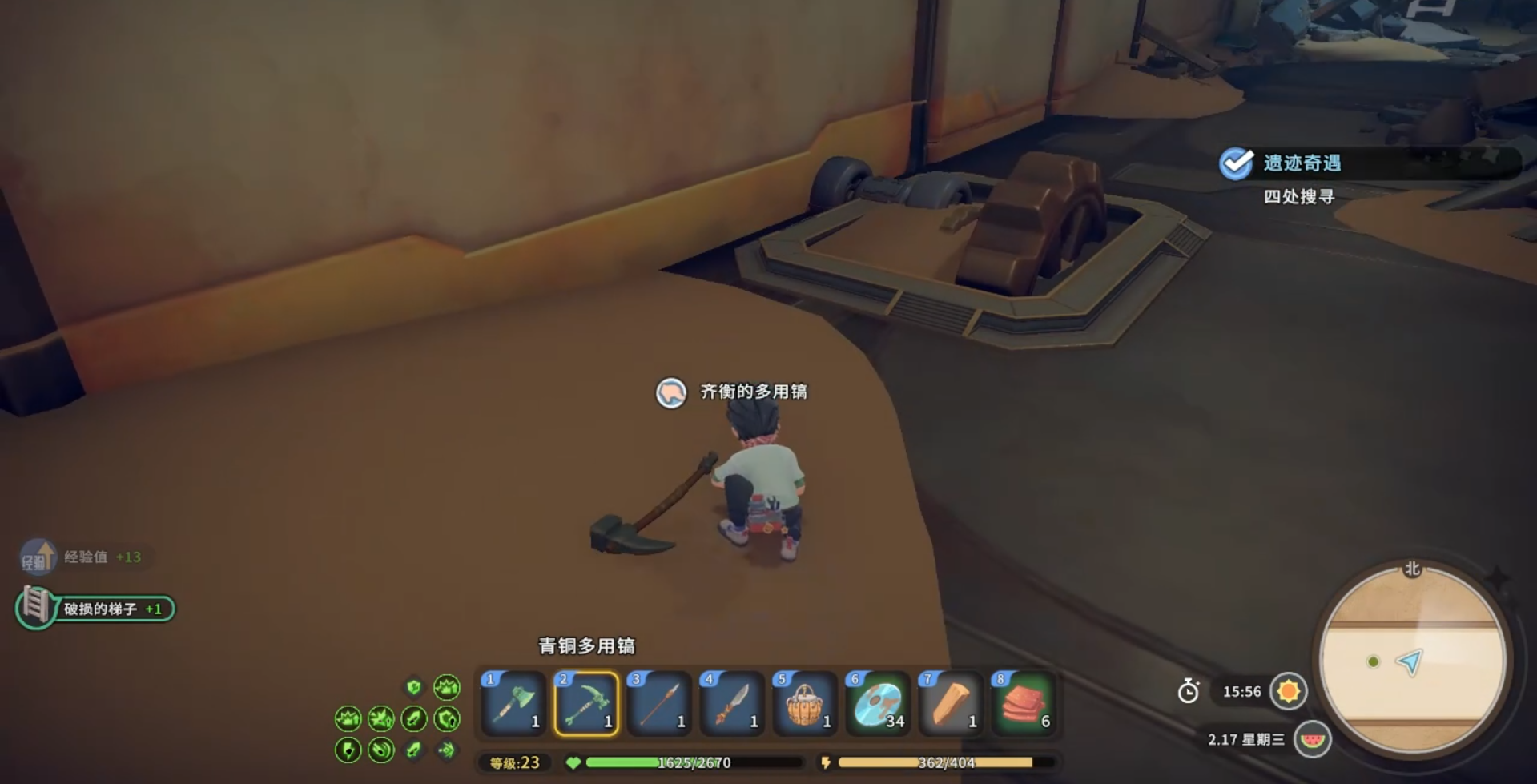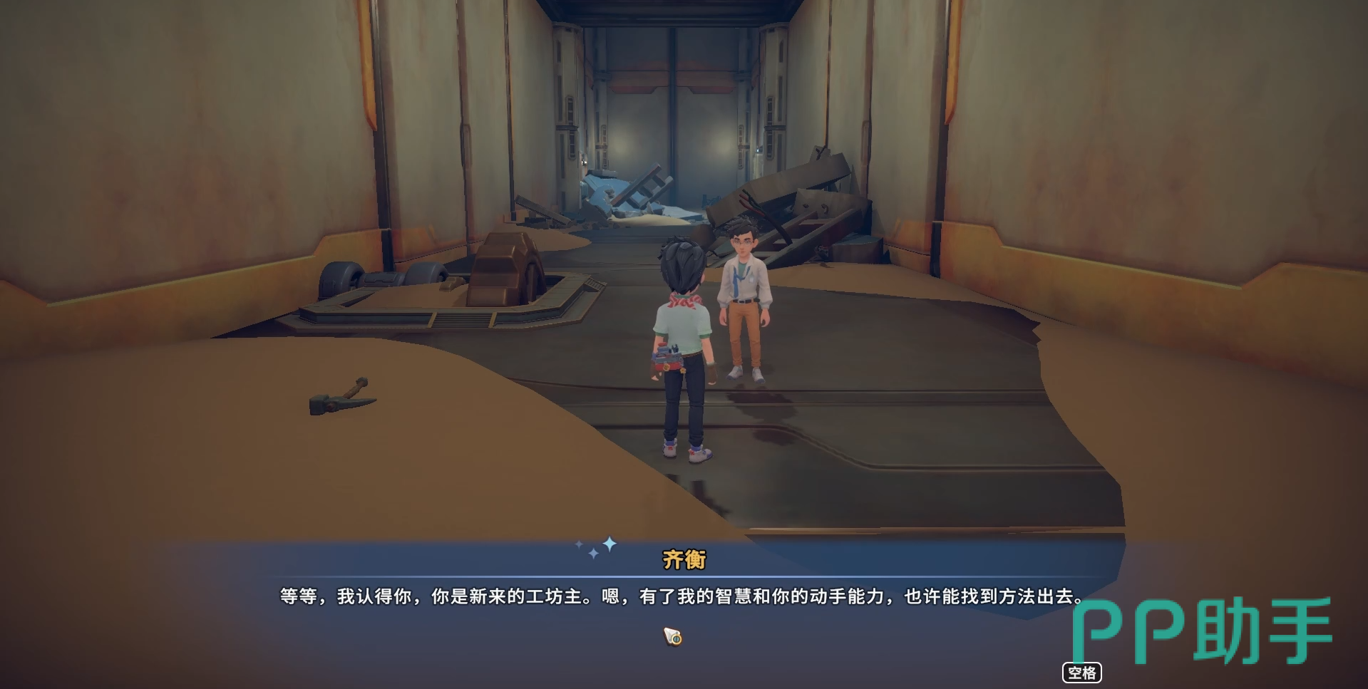 在齐衡身旁可拾取关键道具——“齐衡的多用稿”。此镐子为专属任务工具,不可替换;使用玩家自身携带的普通镐子无法采集遗迹内所有废料。务必装备该道具后,沿隧道逐步挖掘沿途散落的可回收材料,确保资源完整收集。