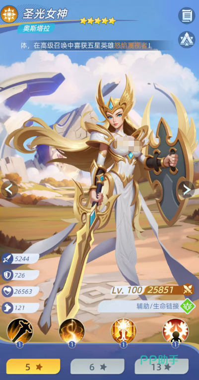 团队辅助位首选【圣光女神】。其核心技能“生命链接”可自动锁定当前生命值最低的友方单位建立灵魂连接,链接范围内所有目标均可享受治疗,回复量为施法者攻击力的156%;同时提供10%基础免伤。该免伤效果可叠加至5层,叠满后达成50%高额减伤,显著强化整支神魔队伍的容错率与持久作战能力。