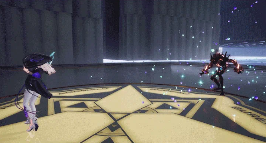 【普通攻击·三重形态】 ①「秘密成型时」:双持武器发动最多5段连击,全程造成灵属性异能伤害;每段命中均可稳定获取1颗“玫约子弹”(总计最多2颗),第5段命中时自动对目标缔结“致命玫约”。 ②「俯瞰全局」:空中滞留状态下点按普攻,下落过程中积蓄能量,落地瞬间释放异能伤害;伤害倍率随下落高度线性增长,最高可达基础值的3倍(即+200%)。 ③「信息导向型」:长按普攻激活自动索敌模式,单发锁定射击;若当前持有“玫约子弹”,则立即消耗子弹展开连射,且系统将优先攻击已处于“致命玫约”状态的目标。
