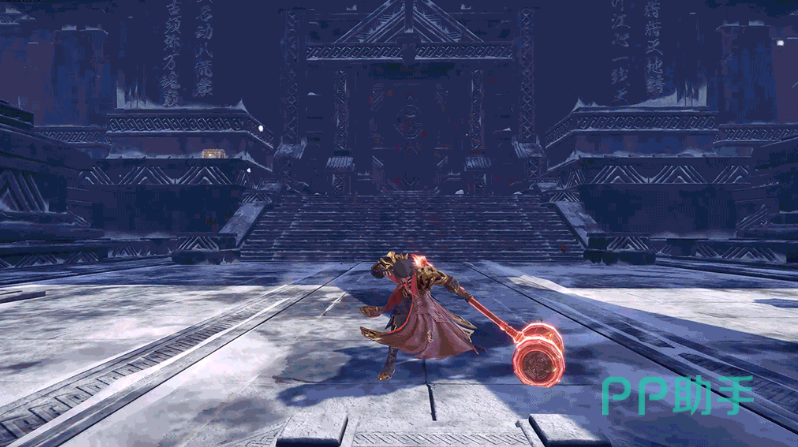 基础攻击名为“重击锤”。当角色装备核心被动“撼地霸怒”时,普通攻击的最后一段可对未处于震荡状态的目标附加多层冲击效果;若携带的是“崩天威压”,则该段攻击会对已进入震荡状态的敌人施加若干层冲击。技能切换技为“昊天神域”,释放时挥舞昊天锤对周围造成范围伤害,并使武器持续旋转,期间不断打击附近敌方单位。