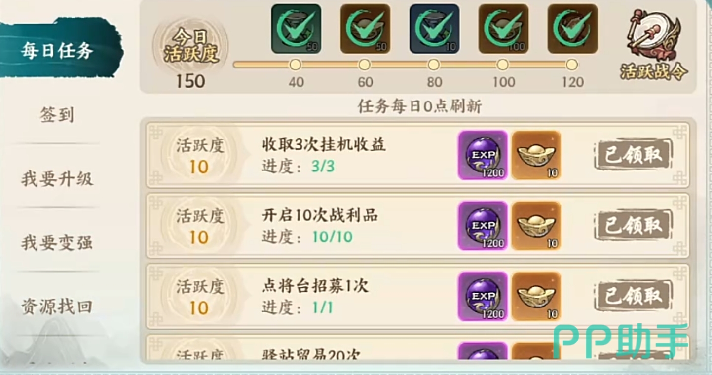 由于部分副本存在等级解锁机制,在角色等级较低时可能出现任务提前完成但活跃度未达标的情况。此时可考虑执行一些需少量资源投入的任务来补足剩余活跃值,比如使用点将令进行招募等操作。此外,即使已领取全部活跃奖励,若仍有未完成的经验类任务,也应尽量完成,避免错失宝贵的升级机会。