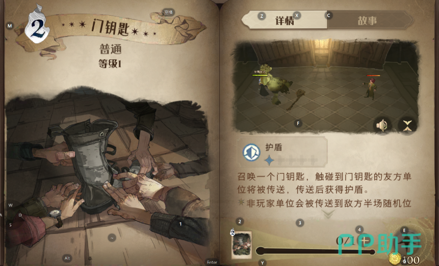 【门钥匙】可以召唤出一个门钥匙,触碰到门钥匙的队友可以被传送走,传送出完成后是可以获得一个护盾的,如果被敌人使用的话,那么敌人会受到伤害,们会在比赛场上持续10秒的时间!