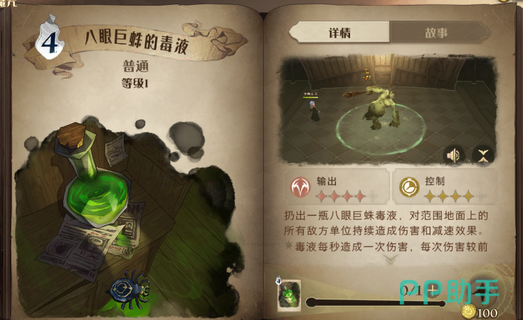 【八眼巨蛛的毒液】这个技能可以和小蜘蛛一起来搭配使用,释放距离会比蜘蛛远很多,在附件丢出带有毒素的毒液,会持续攻击敌人,并且位移到上方的敌人是会受到减速效果的!