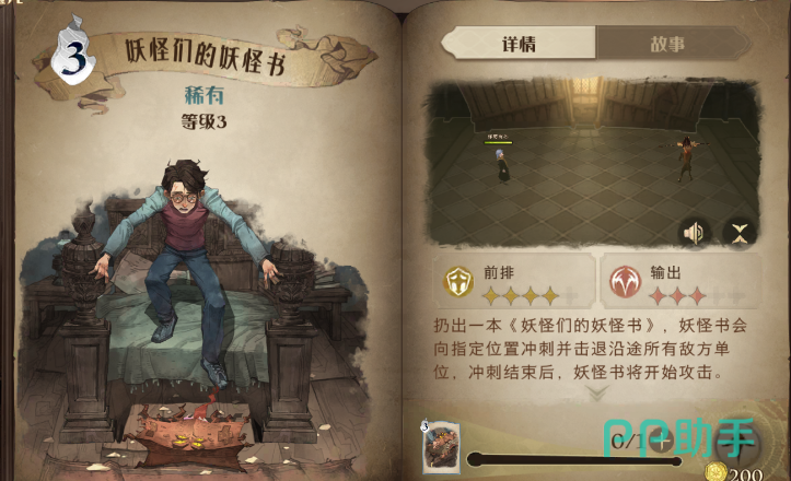 【妖怪们的妖怪书】这个书的话,可以当做一个前排来使用,自身是会对敌人造成一个冲击类的控制效果,会把附近的敌人进行一个击飞,然后停下开始攻击附近的敌人,可以直接突进到巫师的脸上!