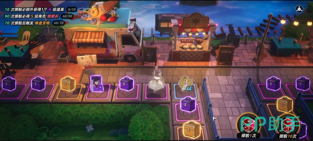 游戏内设两类独立棋盘:“王牌一代目”为限定UP池,采用专属道具“质实骰子”进行抽取;“世间奇遇”为常驻标准池,使用“捏造骰子”。常驻池每累计50次掷骰,可自主选择一名S级常驻角色;限定池则遵循相同基础逻辑,但保底机制更为严格。所有掷骰操作均在动态棋盘界面上完成,角色“咻啪”的行进过程配有完整动画链路,强化操作沉浸感。