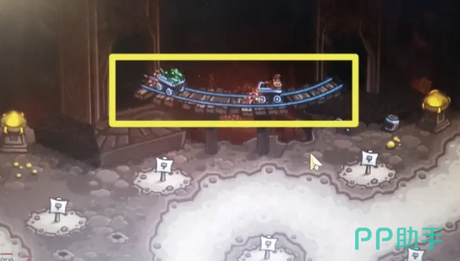 第四关成就:【幸福终点站】、【矿车大屠杀】、【打地鼠】。幸福终点站的要求是在三辆矿车到达之前摧毁他们,点击轨道上的矿车就有摧毁按钮,直接点就好了,最后一趟有两辆矿车,如图所示,只需要点后面那一辆即可。矿车大屠杀的要求是帮助矮人国王穿过矿区,打地鼠则是需要击杀矿区内的三只鼹鼠。这一关的成就比较多而且对操作要求比较高,建议大家多玩几次,熟练了再来尝试挑战也可以。
