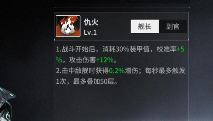 其二段增益机制为持续命中反馈型设计:每次攻击命中敌方舰船,均可获得最高0.5%的独立增伤效果,该效果可叠加且不衰减,每秒最多触发一次,上限50层,即累计最高25%的永久性伤害增幅。该特性使其在面对高血量、长战斗周期的目标(如BOSS关卡、高阶副本首领)时,输出曲线呈现明显上升趋势。