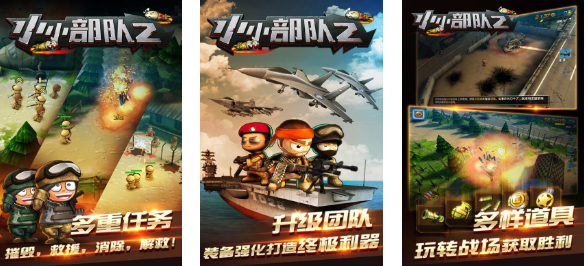 小小部队2也是款画风塑造搞笑的萌系射击闯关游戏,多重的任务系统和场景刻画让耐玩性增加不少,玩家可操控三人小队在复杂雨林环境中展开射击,采用的是触屏点击射击的方式所以界面很干净,手雷等一系列投掷道具会在关键时刻发挥作用,还加入了恐怖的丧尸围城模式玩起来更加惊悚,快组合自己的小小部队参与各种军事任务吧。
