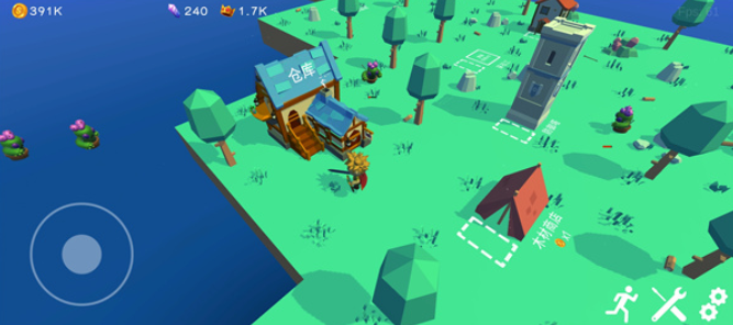 游戏整体的自由度是非常高的,玩家可以按照自己的想法扩建这个岛屿,每一次扩建岛屿,都可以在原有的面积上,扩充初始面积那么大,玩家可以进入到这些全新的区域中收集资源,除了在开采物资的时候,会遇到这些怪物之外,他们还会进入到玩家的营地中进行破坏,想要阻止他们的话就需要在这里修建炮塔,然后不断提升角色的能力。