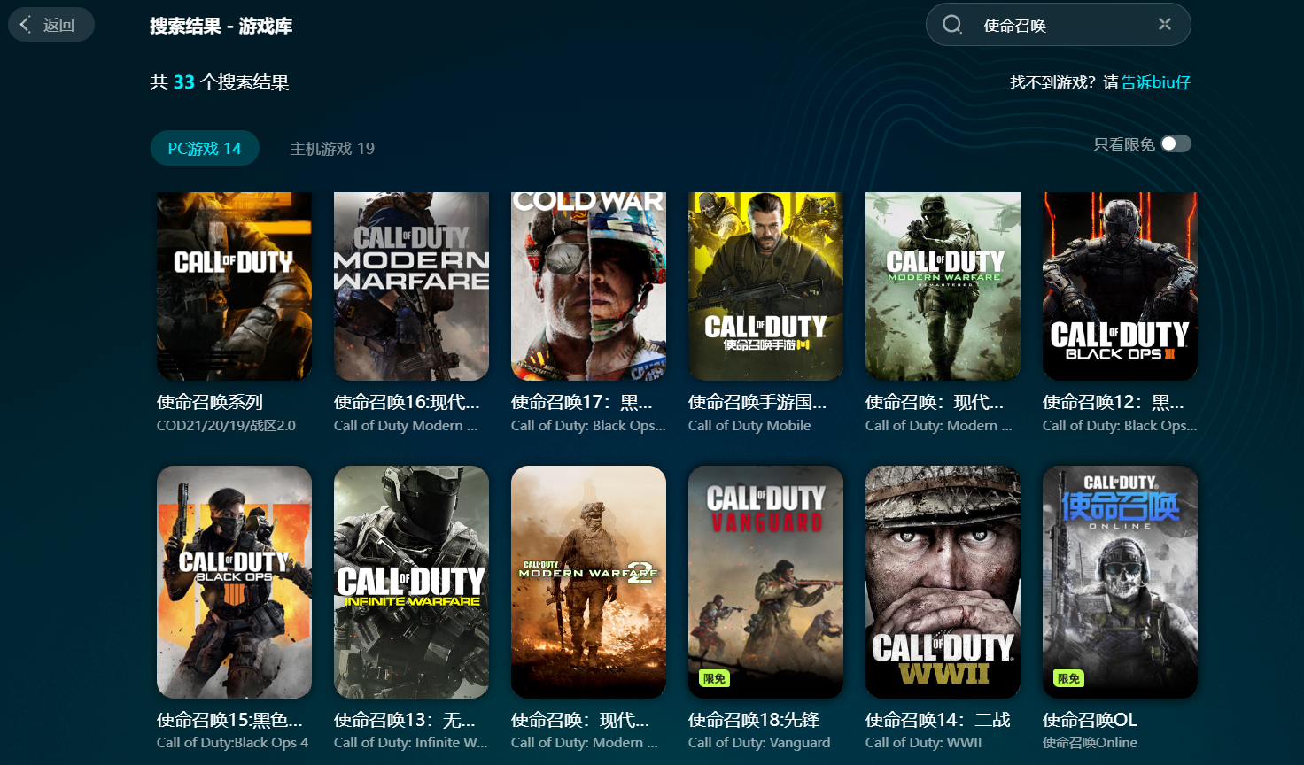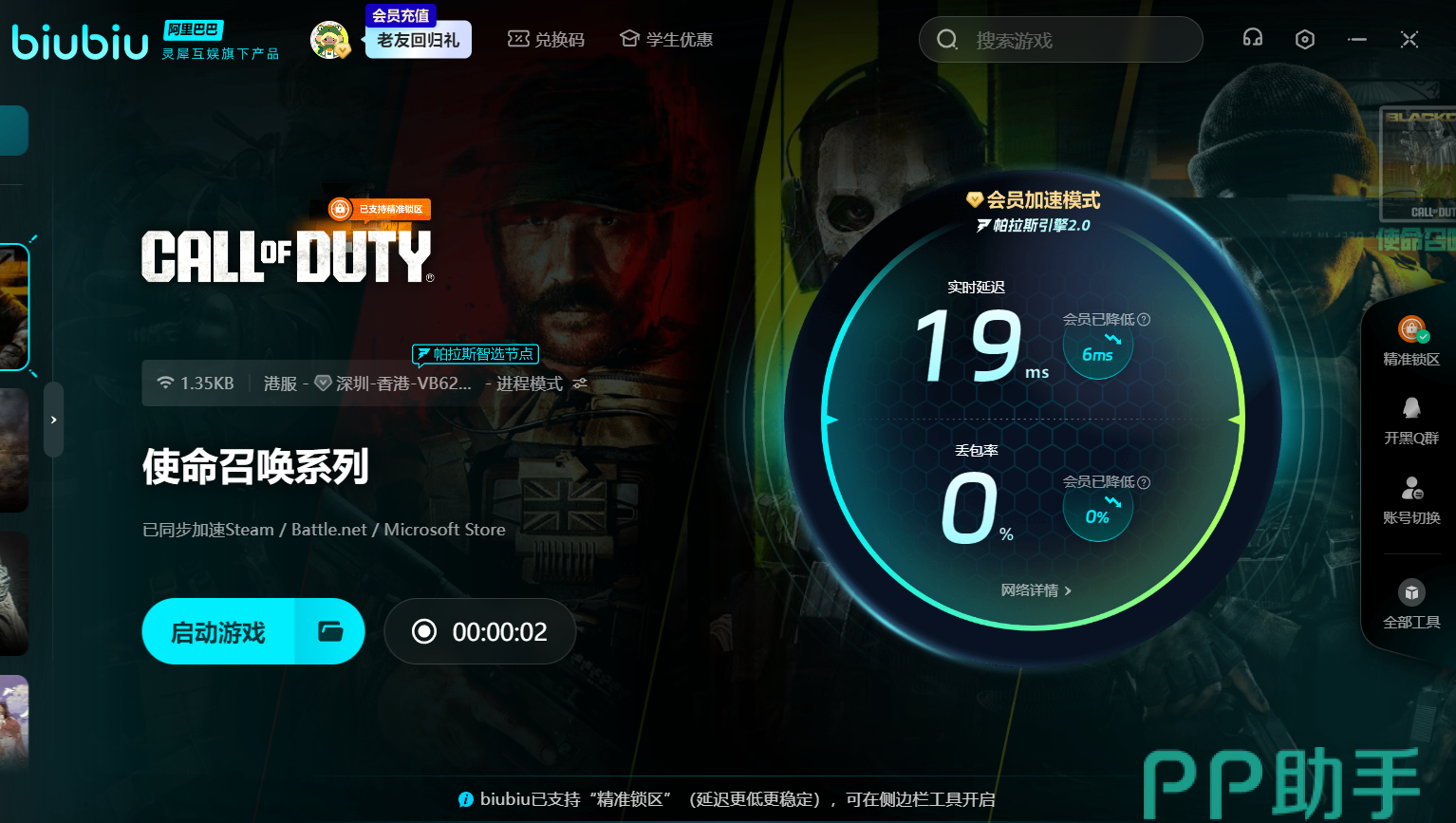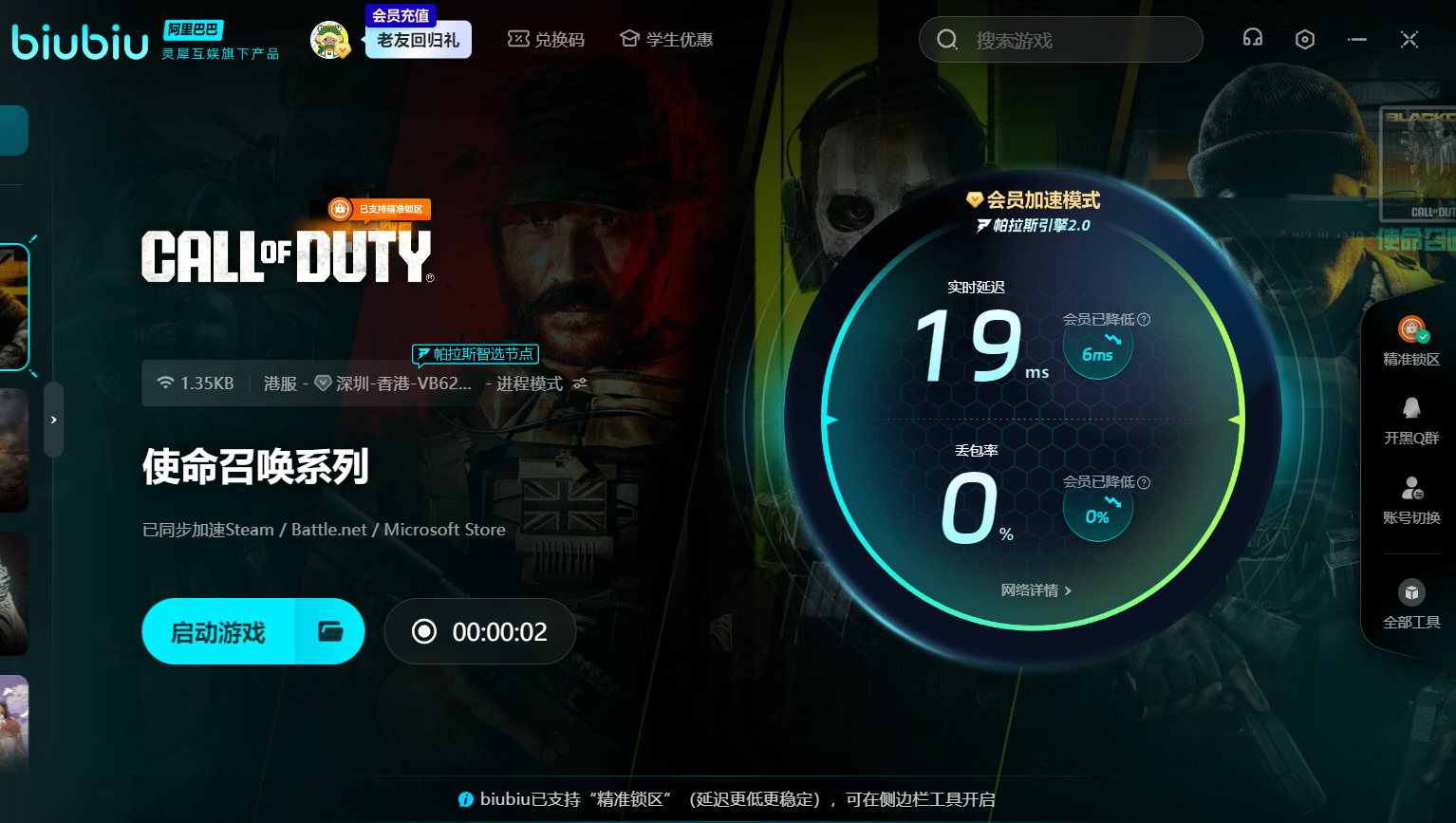 使命召唤系列佳作不断,biubiu加速器的游戏库也十分强大,涵盖系列多款经典作品。玩家只需一个会员账号,就能自由切换加速,随时随地畅玩整个使命召唤系列,性价比很高。