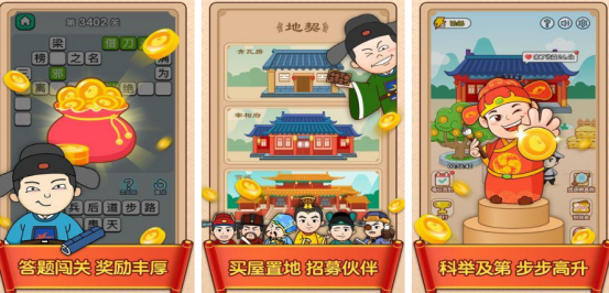 热门的成语的游戏,整体的难度并不大,拥有众多选项玩家可自由挑选,降低答题难度的同时适合不同的年龄段。其中设置的题目相当广泛,难度逐渐增加,满足不同玩家的种种需求。不断推进关卡升级并完成关卡之后将获得丰富的奖励,也能对官职晋升,获得步步高升的成就感。其中融入了中国传统文化元素,通过游戏的方式将中华晨宇进行传播。
