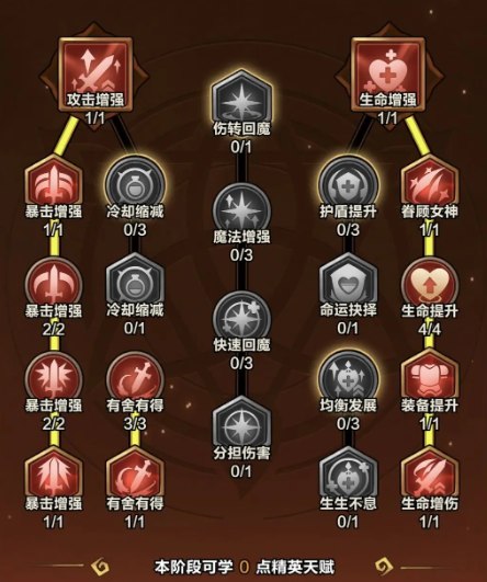 天赋加点需严格围绕“魔法弹输出最大化”展开。优先级顺序明确:首点暴击率、暴击伤害、普攻伤害加成类天赋;其次补足技能伤害与攻击速度;穿透、吸血、护盾等保命向天赋,在中后期攻速与输出成型后逐步补全。特别提醒:普攻伤害类天赋对本流派收益极高,应早于技能伤害类天赋投入资源,确保核心输出链路全程增益覆盖。