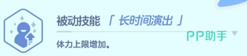 被动技能「长时间演出」直接提升最大体力值,强化其前排持续作战能力。该效果不依赖触发条件,全程常驻生效,属于基础却关键的生存向增益,在高压图鉴或Boss战中尤为珍贵。