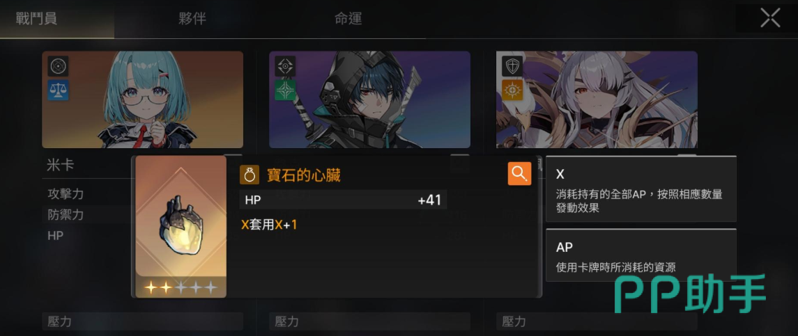 举例说明:若一张攻击型卡牌本身费用为4点,其基础伤害公式为“攻击力×4”;装备“宝石的心脏”后,该次攻击的实际倍率升至“攻击力×5”。本质是将AP消耗量直接映射为伤害倍率增量,属于纯增益型机制。当角色成长至中后期,基础攻击力显著提升,配合高费卡打出全额AP消耗,可实现单次攻击的爆发式数值跃升,大幅压缩精英怪与Boss战的回合数。