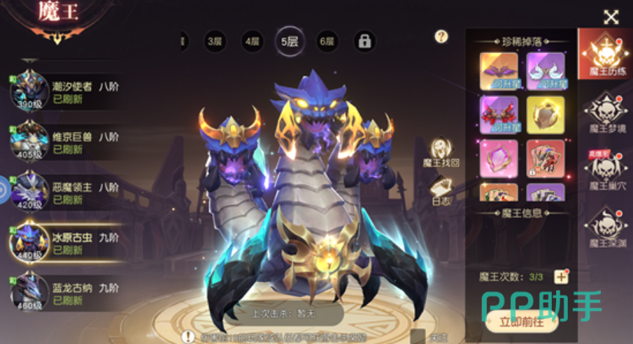 魔王历练是日常资源积累的主力入口。每位玩家每日可挑战三次,挑战次数每30分钟自动恢复一次,每日凌晨重置;达到指定会员等级后,还可使用彩钻额外购买挑战次数。该玩法强烈推荐组队参与——只要队伍成功击败对应等级魔王,所有成员均可独立获得当次掉落的魔装奖励,无共享或竞争机制。