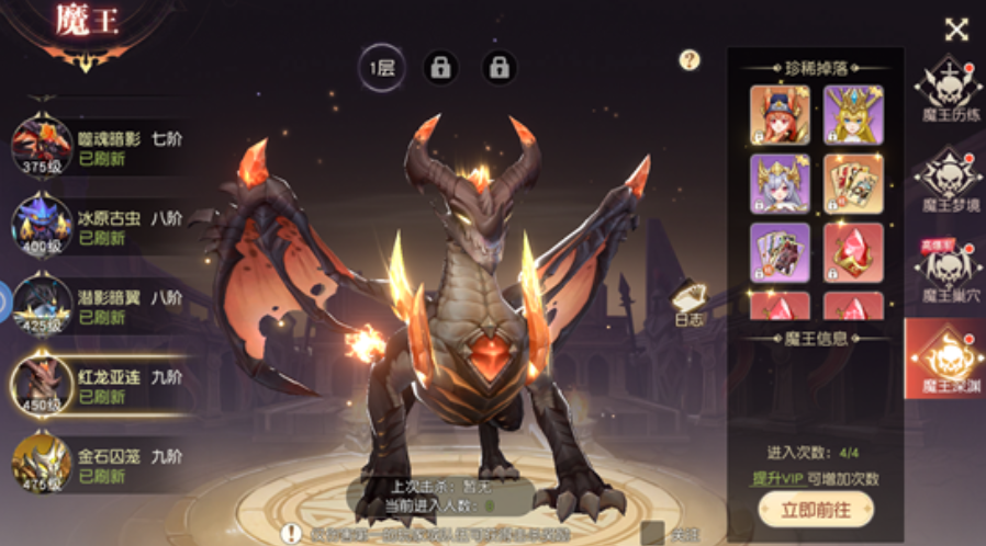 魔王梦境则侧重单人体验与容错优化。玩家每日拥有两次挑战机会,同样支持会员升级解锁额外次数,并于每日零点清空。关键机制在于:无论中途退出或挑战失败,均不扣除当日次数,大幅降低试错成本,适合战力尚在成长期的玩家反复磨合操作与配置。
