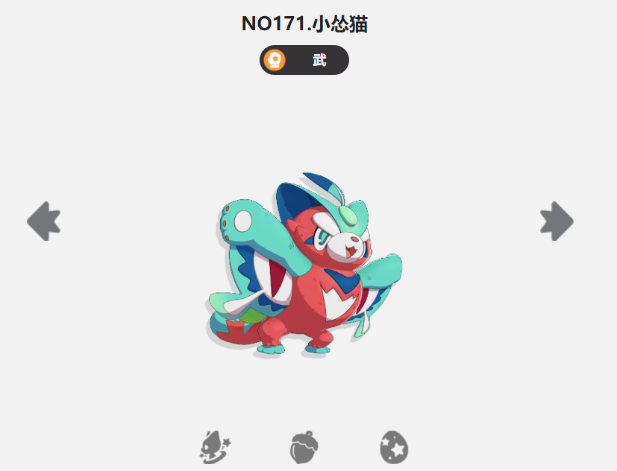 小怂猫的宠物,整体的外观十分的具有特点,具有红绿相间的外形,使用威慑的特性是可以来更好的打断对手,进入到第二个回合的冷却时间,还有一个能量刃的技能,也可以造成伤害,他的技能也非常的多,在使用斩断这个技能时,也可以来打断对手的输出,提升自己攻击能力,喵喵这个角色,也是非常不错的,可以利用自己抓挠的效果对敌人造成物理伤害,同时还可以恢复自身的能力,在对抗的过程中,可以造成草系的伤害。