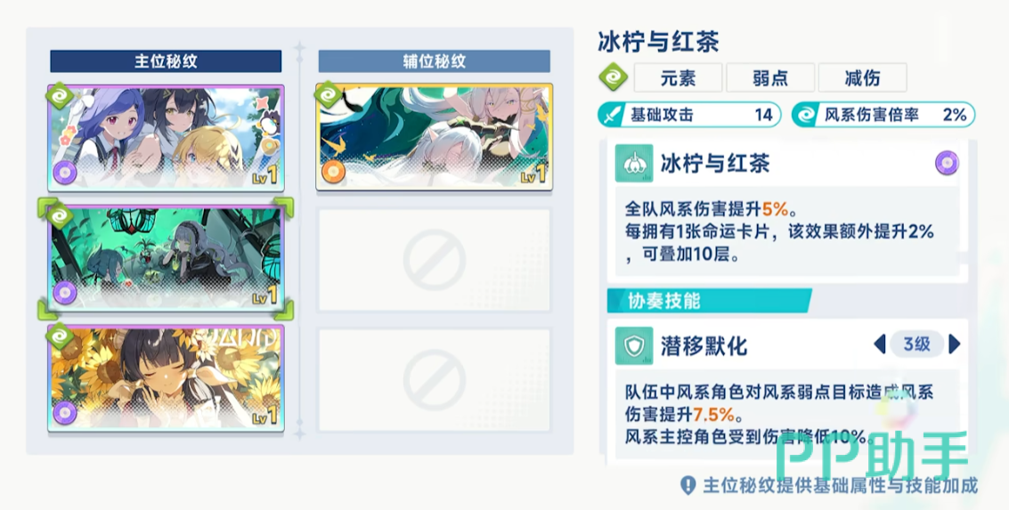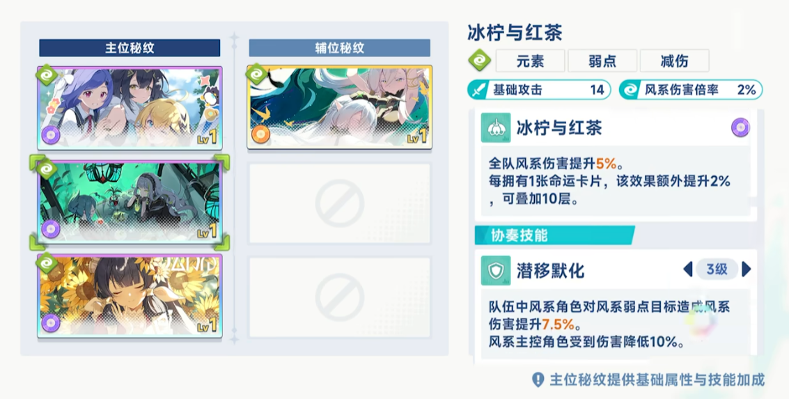 建议新人玩家优先组建风属性阵容。在新手池20选1环节可直接选定风系主C“花原”,其具备稳定的输出模式与较高的技能倍率。配合初始三名角色中的“尘沙”、登录赠送的“杏子”,以及完成魔王任务第二章获得的“卡娜丝”,即可构成完整的风队配置。公测期间直接赠送杏子,使风队成型更加便捷。秘纹搭配方面,主控推荐使用“小憩片刻(上位:白日花园)+未闻芳名+乘风(上位:空白的序章)”,辅助位则装配“翡翠隙境”,上位可进一步补充“灵验颂歌”或“小憩片刻”以增强团队表现。