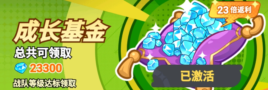成长基金88元:按战队等级进度发放奖励,总计可得23300【钻石】。