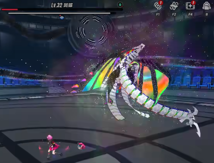 斑蝶为三阶段机制型BOSS,各阶段转换以血量阈值为唯一触发条件:首阶段(100%–60%血量)动作前摇显著,攻击频率低且单次伤害可控,建议在此阶段集中释放队伍核心爆发技能,快速压低血线;第二阶段(60%–40%血量)起,其开始频繁位移,常潜入地面水体或升空隐匿,此时需紧盯水面波纹——波纹出现即预示即将发动水下突袭类范围技,须提前横向闪避;第三阶段(低于20%血量)形态变更,新增一对高机动性机械臂,攻击判定范围扩大,并附带强制追击连段,此阶段务必激活异象系统:通过普攻积攒异象值,及时施放异象技能打断其核心动作,延长控制窗口。同时,合理配置队伍属性组合,可解锁额外异象技能槽位,显著提升容错空间。
