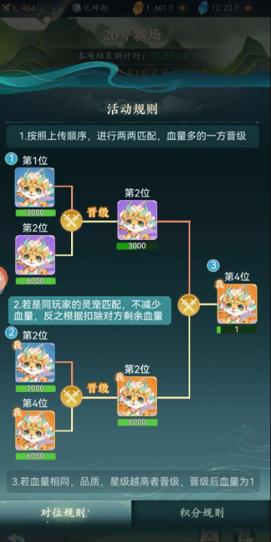 需特别注意两项关键限制:其一,每只宠物每日仅限上阵1次,不可重复使用;其二,若对战结束时出现平局情形(如双方血量/积分相同),系统将以宠物品质优先级与星级高低为判定标准,品质更高或星级更高的宠物视为最终胜者。