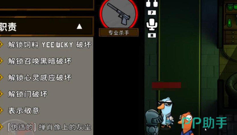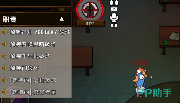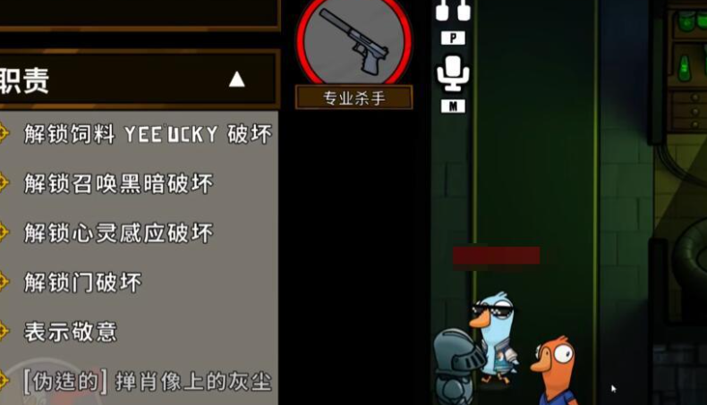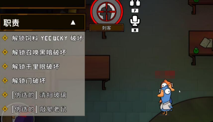 身份窃贼鸭在击杀目标之后,马上就会变成对方的外观,又被称之为伪装大师。炸弹鸭可以通过提前放置炸弹的方法去有效营造出紧张的氛围。专业的杀手在刀人之后,尸体一般对好人是不可见的,只有在接近之后才会出现。