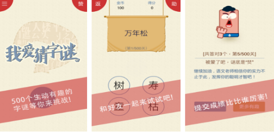 我国的语言文化不断精深,猜字谜游戏大全脑筋急转弯更是中国特有语言文化的展现,融入超级丰富的文化内涵,除了可以猜字之外,还能够猜成语诗词,在解题的过程当中享受深厚的文化底蕴,也能够理解更多的汉字与成语,增强个人的理解能力,今天为大家推荐几款比较受欢迎的猜字谜游戏,具有极强的教育意义。