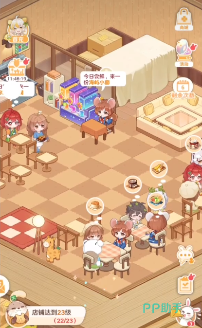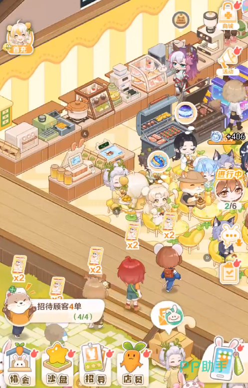 除了后厨烹饪外,前厅服务同样不可忽视。兔灵是一位擅长前台管理的角色,其高效率的服务能力非常适合负责收银、引导顾客入座等任务。而面对客流高峰,厨房压力剧增,此时猫族成员的优势便显现出来——他们拥有极快的出餐速度,能显著提升整体运作节奏,确保更多顾客被及时服务。