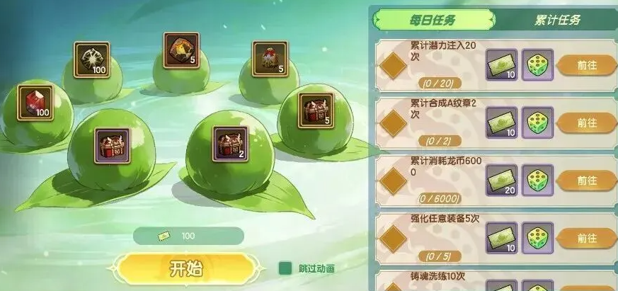 【春日辛勤】采用任务驱动+概率抽取机制。玩家达成指定目标后,可获取踏青骰子与抽奖奖券;消耗奖券即可参与限定轮次抽奖,奖池固定包含全材料自选包、强化石、潜能原石及金币包等高价值道具,保底机制保障基础收益。