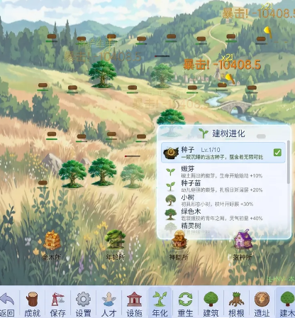 技能树系统构成核心成长路径,所有技能均以木材为解锁资源,涵盖资源掉落率加成、暴击概率提升、连锁砍伐机制等多样化方向。策略性体现在资源分配优先级判断:例如前期投入木材升级自动伐木效率,可能比单纯强化斧头伤害更具长期收益。游戏还引入重生机制,允许玩家主动重置当前进度,换取更高阶的终极能力,如木材获取倍率跃升、树木瞬时再生等突破性效果。