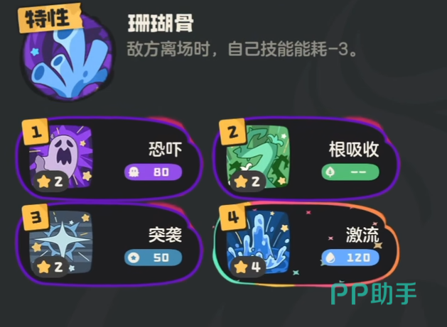 海枝枝为水系与幽系双属性精灵,因此会受到草、电、光、恶、幽五种属性的克制。但其自带的幽系技能能够有效反制光系与同属幽系的目标,同时具备吸血机制,可在战斗中持续恢复自身生命值,增强持久作战能力。