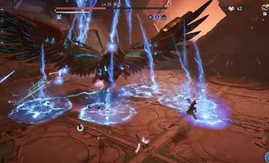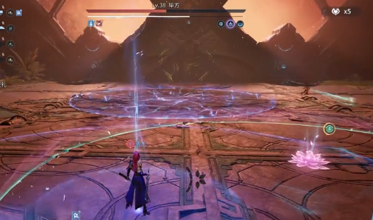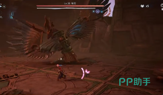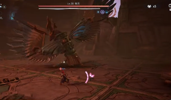 近战阶段需重点防范「双翼连击」:毕方将连续挥动双翅发起两次范围横扫,第二段判定极快,连续闪避易失误。建议优先启用格挡类技能(如盾山举盾、张飞护盾)吸收首段伤害,或直接切换远程英雄保持距离拉扯,避免陷入贴身压制节奏。另一关键机制为「下坠锁定攻击」——Boss升空后强制锁定一名玩家并垂直下砸,落地瞬间生成圆形灼烧场。正确应对方式为:观察攻击圈收缩过程,在两圈即将重合前瞬时侧向翻滚,切勿使用格挡或化解技能,否则将无法规避后续地面持续燃烧效果。