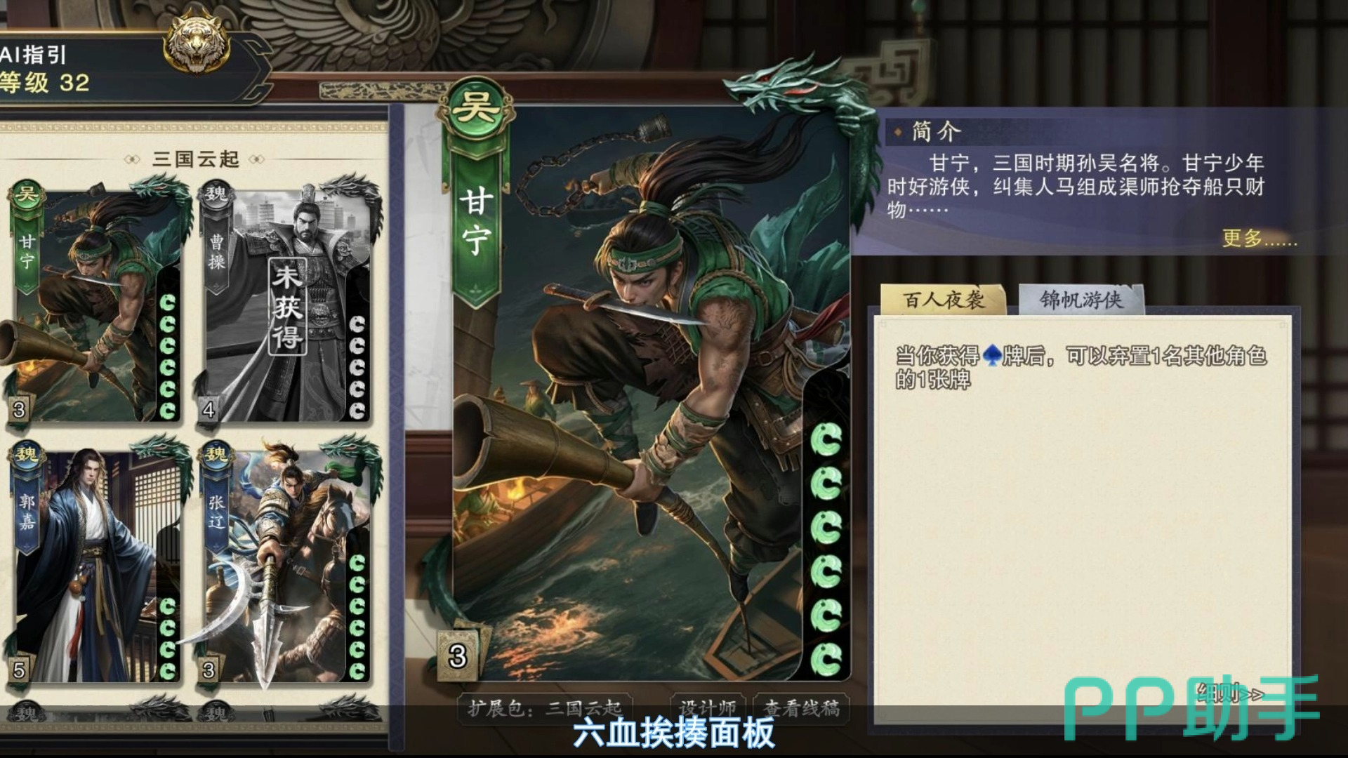 甘宁在代号杀中简直就是越打越强的代表,他的技能全部都是以获得黑桃牌为前提。