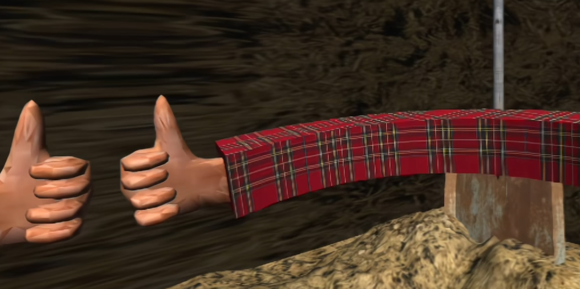 初到农场时,四周寂静无人。经过短暂观察后,在远处的田地里出现了一个模糊的人影。出于寻求帮助的目的,主角靠近此人询问位置信息。然而,当接近时,那人突然以怪异的姿态冲来,并开始吟唱诡异童谣,紧接着分裂成多个身影将玩家团团围住。