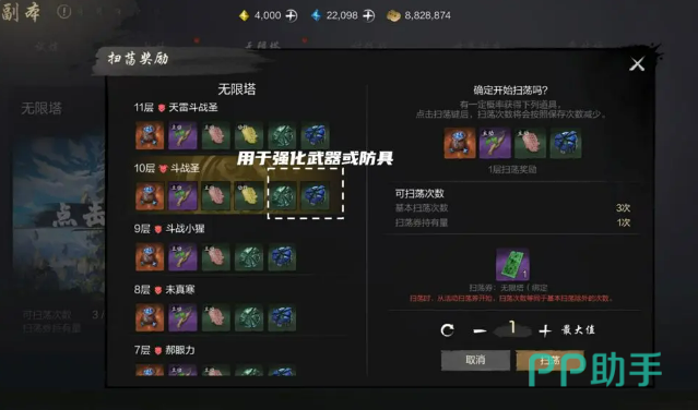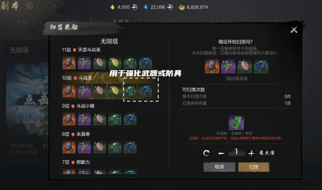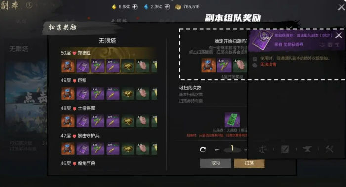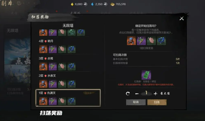 说到刷塔的策略,大家普遍知道可以通过扫荡来获得奖励。每天,你会有三次扫荡机会,扫荡后会自动获得对应的奖励。但是要记住,扫荡次数每天都会刷新,因此为了不浪费机会,记得合理安排你的扫荡次数。最推荐的策略是,每天尽量保持一次扫荡,逐步提升你的层数。这样,既能确保高效刷塔,又能通过不断突破新的层级,积累更多奖励。