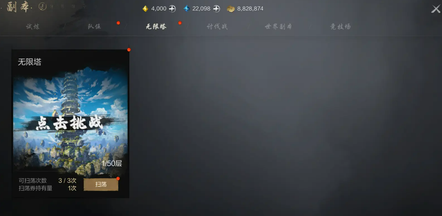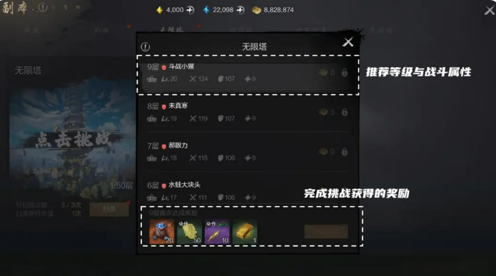 首先,你需要知道,无限塔是一种逐层挑战的玩法。每一层都有一个强力BOSS,击败它们就能获得奖励。每次挑战只能击败一层,成功之后可以领取相应的奖励。更值得一提的是,无限塔并没有挑战次数的限制,你可以尽情尝试,直至突破每一层。为了让挑战更顺利,记得提前检查你的角色等级和战力,确保你有足够的实力应对每一层的BOSS。