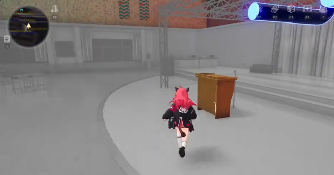 最终待激活区域为教室,核心交互目标为演讲台。玩家需移动至其边缘位置完成互动,随后应对新刷出的敌对单位进行清场。至此,副本内全部四个主场景(游泳池1、游泳池2、排球馆、教室)均完成彩色激活。无需额外探索,直接沿原路径返回至初始黑洞点位。当角色接近黑洞时,系统将自动弹出交互提示,确认后即刻判定副本通关成功,完成“异环脑洞修复工程”全流程。